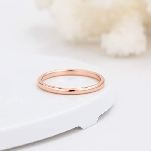 Greenpod 2mm Thin Tungsten Wedding Bands for Women Rose Gold Domed Slim Engagement Promise Ring Comfort Fit Size 10