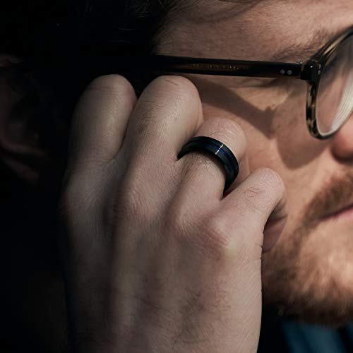 Greenpod 8mm Mens Black Tungsten Ring with Thin Blue Groove ...