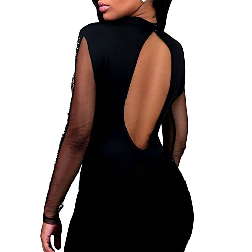 Eiffel Women's Long Sleeve Bodysuit with Silver Studs Black XL Price in USA