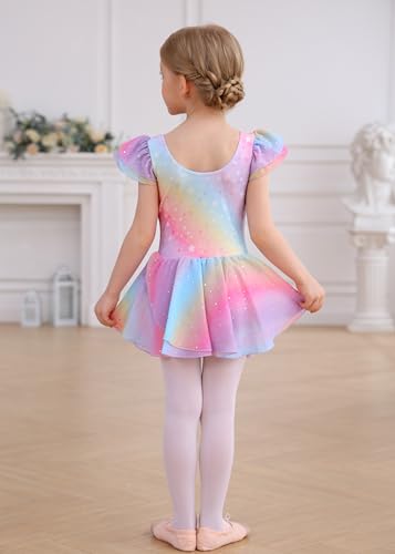 MdnMd Rainbow Dance Ballet Leotard with Skirt for Girls Todd...