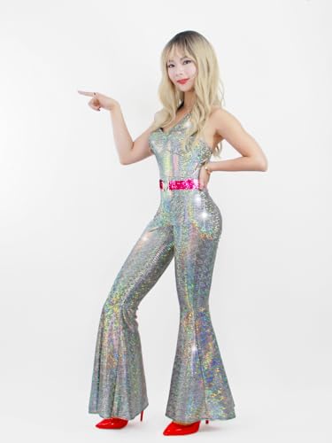 Nawgut Disco Outfit 70s 80s Prom Sparkle Flare Jumpsuit Part...