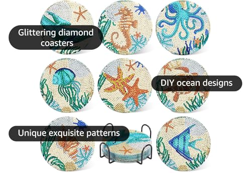 UPINS Diamond Art Painting Coasters 8Pcs Ocean Diamond Art C...