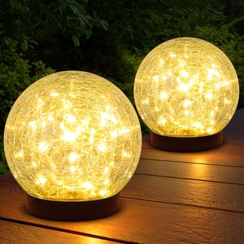ASOMST 2-Pack Garden Solar Lights Outdoor Cracked Glass Ball...