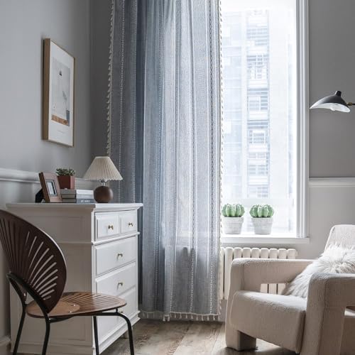 These beautiful and airy H.VERSAILTEX LINEN sheer curtain panels is a great choice for anyone seeking a simple yet elegant look for their rooms it is not cheap looks but very rich effect. The tone on tone embellishment provides a light and airy feel the perfect final touch. RICH MATERIAL & LOVELY PRICE These semi-sheer curtains are not transparent just block out enough light so that natural light can be into but no one can see through. Deeply impressed your friends family and guests with these window curtain panels on any window. UNIQUE HOME DÉCOR & QUALITY LIFE These curtains are perfect for filtering the light and create an amazing ambience in your rooms. Add your house an classic and sophisticated touch thus you can easily blend these with your existing home décor. Because of their understated appeal these curtains look equally good in formal and informal spaces also sturdier