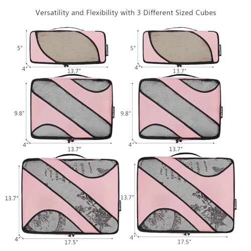 DETAILS & FEATURES Double zipper pulls make opening/closing simple and fast. Two-way zippered opening for maximum compression. Mesh top panel for easy identification of contents and ventilation. Interior seams fully finished for durability.Soft mesh won't damage delicate fabrics. Webbing handle for convenience when carried by itself. A variety of sizes means it can fit in any size daypack backpack or suitcase. 2* Large( 17.5\" x 13.7\" x 4\") 2*Medium (13.7\" x 9.8\" x 4\") 2 *slim (13.7\"x5\"x4\") Organize Your Trip. BAGAIL Packing cubes help you pack like items together. One cube for your bottoms one for tops another for underwear etc. You can choose to further organize according to cube size or even by choosing a specific color to signify which cube holds which belongings.Be creative and organize things the way you love. Find Your Things In A Flash. When using packi