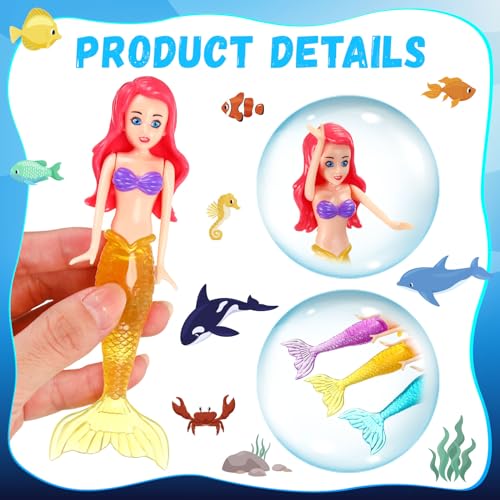 Civaner 4 Pieces Mermaid Dive Toys Mermaid Bath Toys Colorfu...