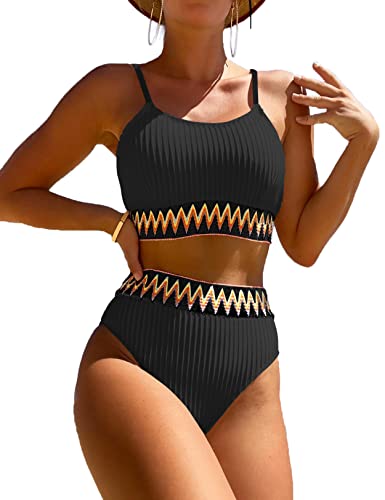 Zuvebamyo Women's High Waisted Swimsuit Two Piece Ribbed Bik...