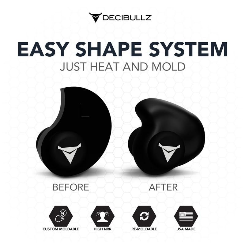 Decibullz - Custom Molded Earplugs 31dB Highest NRR Comfortable Hearing Protection for Shooting Travel Swimming Work and Concerts (Black)