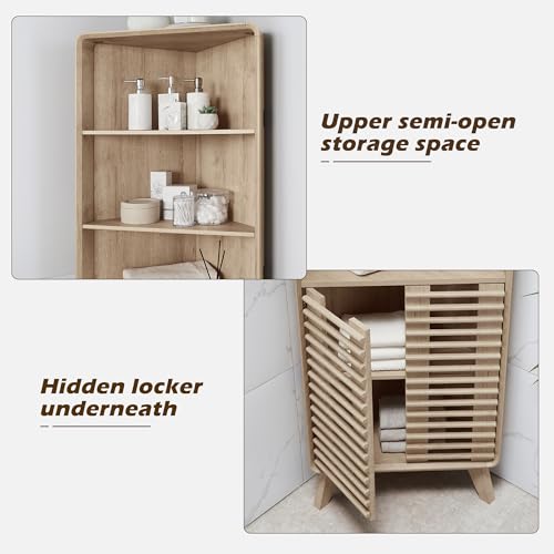 RedLemon Slatted Door Corner Cabinet 68"" Tall Mid-Century B...