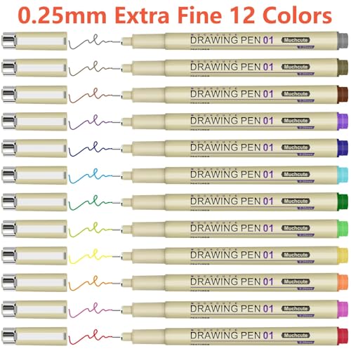 Muchcute 01 Micro Fineliner Drawing Art Pens: 12 Colors 0.25...