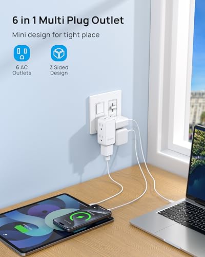 TROND Outlet Extender with 360 Rotating Plug 6 AC Outlet Spl...