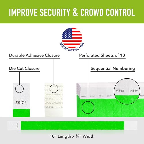 WristCo Tyvek Wristbands Variety Pack - 500 Count ¾” x 10”- Waterproof Recyclable Tear Resistant Paper Bracelets for Events Concert Festival Admission Party Green Yellow Red Orange Blue Price in USA