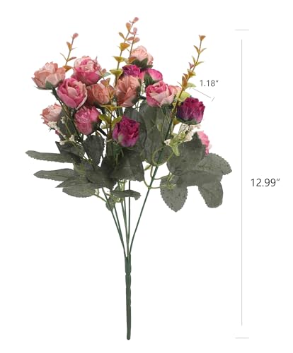 Duovlo 7 Branch 21 Heads Artificial Flowers Bouquet Mini Rose Wedding Home Office Decor Pack of 4 (Rose Red) Price in USA