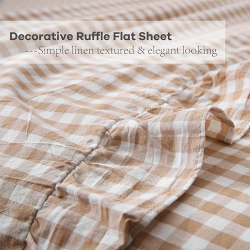 SUSYBAO Tan Gingham Duvet Cover Queen 100% Washed Cotton Beige Plaid Duvet Cover Set 3 Pieces Set 1 Soft Checkered Grid Duvet Cover with Zipper Ties 2 Pillowcases Luxury Farmhouse Gingham Bedding Set Price in USA