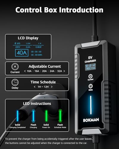 bokman Portable Level 2 EV Charger (240V 40A) Current Adjust...