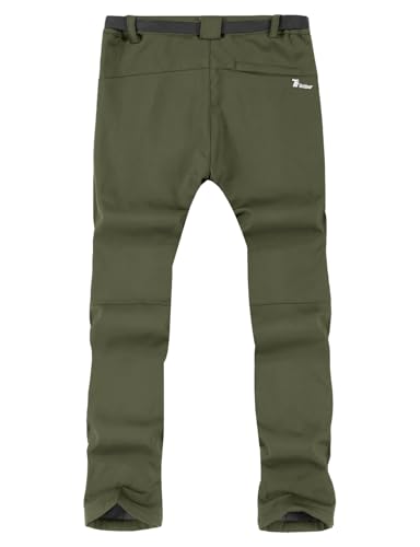 TBMPOY Men's Snow Ski Hiking Pants Waterproof Winter Fleece Lined Pants Camping Skiing Ice Fishing Pants with Belt 01 Thick Green L