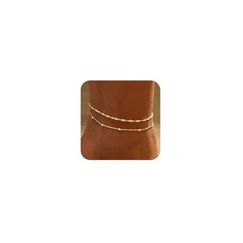 GOSFRY 2 PCS Gold Anklets for Women Waterproof Beaded Anklet...