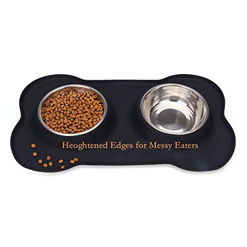 Hubulk Pet Dog Bowls 2 Stainless Steel Dog Bowl with No Spill Non-Skid Silicone Mat + Pet Food Scoop Water and Food Feeder Bowls for Feeding Small Medium Large Dogs Cats Puppies (Medium Black) Price in USA