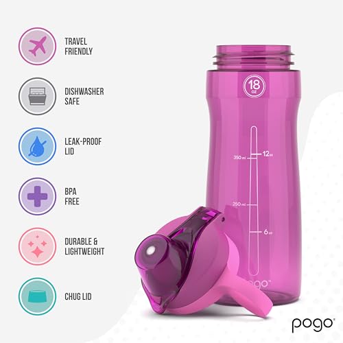 Pogo 18oz Plastic Water Bottle with Chug Lid and Carry Handle Reusable BPA Free Dishwasher Safe Perfect for Travel School Outdoors and Gym Fuchsia Price in USA
