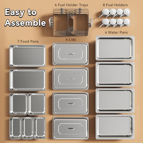 Chafing Dish Buffet Set 8 Qt Stainless Steel Complete Chafer Set Catering Warmer Set with Water Pan Fuel Holder for Parties Dinners Catering Buffet and Weddings 4 Silver