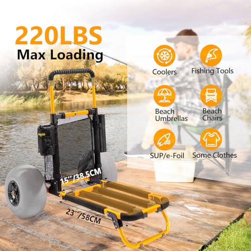 Bonnlo Beach Fishing Cart Beach Wagon Trolley with 12"" Big ...