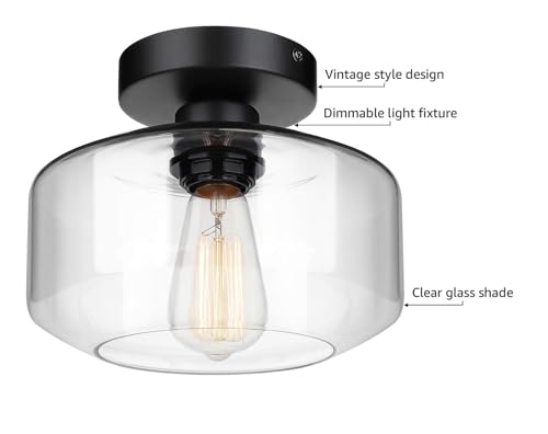 MAXvolador Industrial Semi Flush Mount Ceiling Light Clear G...