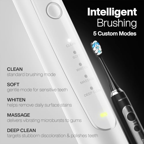 Ultra Sonic Whitening Toothbrush with industry leading ultra powerful 40 000 VPN Motor to whiten and polish teeth while providing a deep clean - 4 Distinct Cleaning Modes including \"Clean\" for standard brushing \"Soft\" for sensitive teeth \"Whiten\" which uses the full 40 000 VPM to dissolve surface stains and whiten teeth over time while \"Massage\" uses pulsating vibrations to boost blood circulation around teeth and gums to improve complete oral health profile. A total of 8 Premium quality DuPont Engineered brush heads are included. Also included is a professional stainless steel dental kit to be used bi monthly to remove more stubborn stains and avoid expensive trips to the dentist.