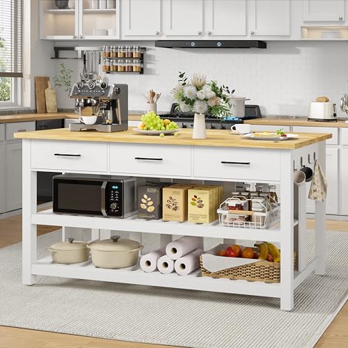 60"" Solid Rubberwood Kitchen Island with Power Outlets - Ex...