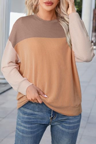 Dokotoo Women's Color Block Long Sleeve Waffle Knit Pullover...