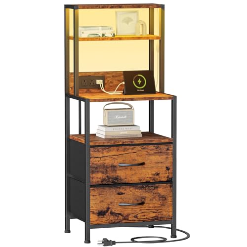 Furnulem Tall Nightstand with Charger Station and LED Tube 3...