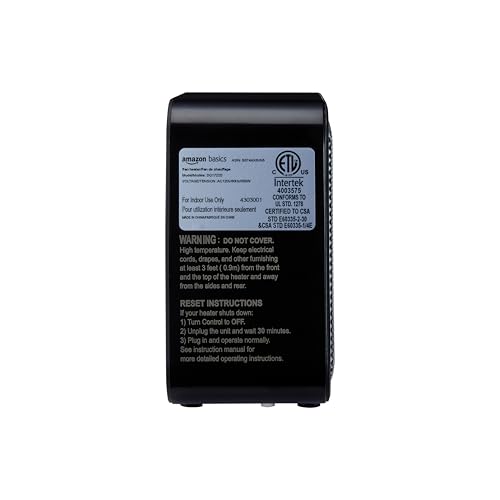 Amazon Basics Ceramic Space Heater Mini Heater for Office Desk Indoor Use 500 W With Tip-Over Protection Lightweight (1.4 LBS) Black 5.8\"D x 3.4\"W x 6\"H Price in USA