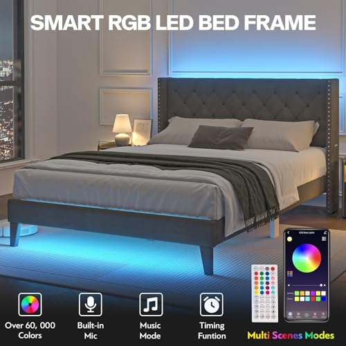 A classic upholstered bed in the perfect shade of navy. That almost sums up what you get with the Omkaram Platform Bed. Also included in addition to its handsome button tufting and timeless silhouette? A tall headboard that’s well suited for thicker mattresses so you can continue to enjoy every cozy inch of your bed while relaxing against a generously sized foam-padded headboard behind it. Plus this dapper foundation is built with a trusty wood platform designed to take the place of your box spring and extend the life of your latex foam or spring mattress. Soft and stylish on the outside yet strong and sturdy on the inside the Omkaram’s framework is made entirely of durable steel that you can depend on for the long haul. And believe it or not it’s packed into one box and delivered right to your door with all tools parts and instructions conveniently packed into the back of the headboard compartment. Backed with a 5-year warranty and loved by thousands of happy customers choos