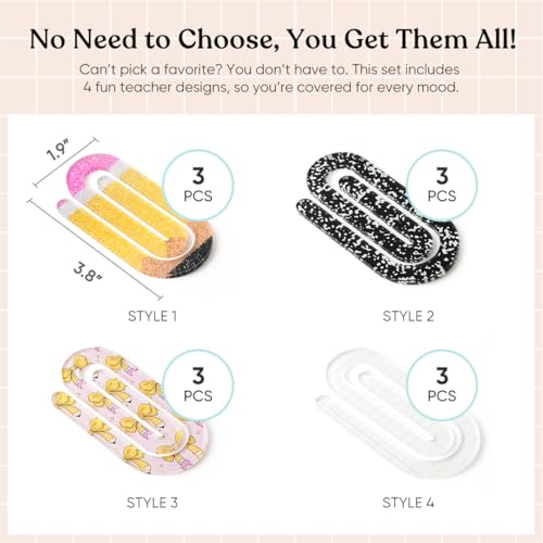 YOPPIX 12 Pcs Jumbo Teacher Acrylic Paper Clips Teacher Appr...