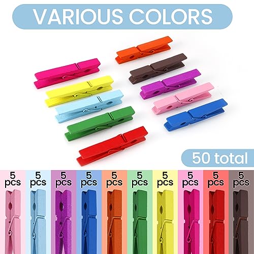 HONGYUTAI 50PCS Colored Wooden Clothespins 2.9inch 10 Color ...