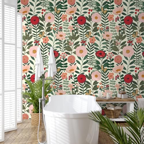 HAOKHOME Boho Peel and Stick Wallpaper Floral Wall Paper Rem...