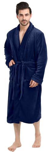 NY Threads Luxurious Mens Shawl Collar Fleece Bathrobe Spa Robe Small-Medium Navy Price in USA