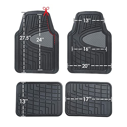 All Weather Tough Rubber Car Floor Mats Liners-Heavy Duty Trimmable Semi Custom Fit for Car Truck Van SUV (Gray) Price in USA