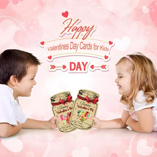 50 Pack Valentines Cards for Kids Mason jar Valentines Day C...