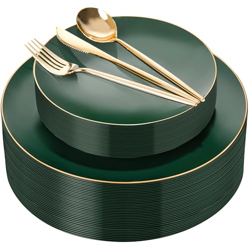 I00000 102 Pieces Gold Plastic Party Plates White Gold Rim 51 Heavy Duty Gold Dinner Plates 10.25 Inch and 51 Disposable Dessert Appetizer Elegant Fancy Wedding Plates 7.5 Inch Price in USA