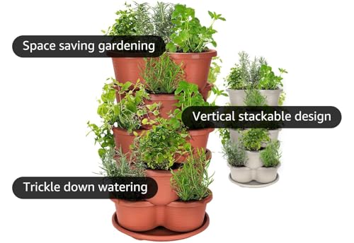 Amazing Creation Stackable Planter Vertical Garden Strawberry Planter Indoor/Outdoor Planters 5 Tier Herb Garden Tower for Growing Vegetables and Succulents (Terracotta) Price in USA