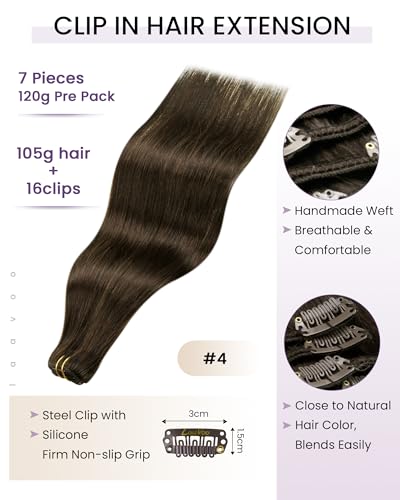 LaaVoo Human Hair Clip in Extensions Brown Hair Extensions Clip ins Natural Brown 18 Inch Clip in Hair Extensions Real Human Hair Silky Straight 7Pcs 120G Price in USA
