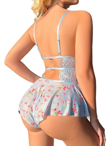 Avidlove Women Blue Lingerie Bodysuit Lace Teddy Mini Babydo...
