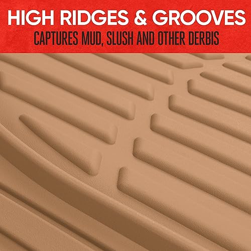 Motor Trend FlexTough Performance All Weather Rubber Car Floor Mats with Cargo Liner - Full Set Front & Rear Floor Mats for Cars Truck SUV Automotive Floor Mats (Beige).