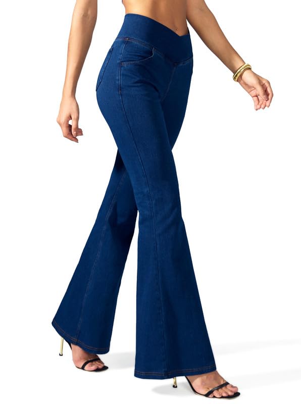 Rammus Flare Jeans for Women Crossover High Waisted Bell Bot...