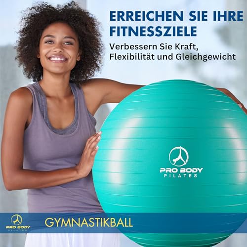 ProBody Pilates Ball Exercise Ball Yoga Ball Chair Multiple Sizes Stability Ball Chair Gym Grade Birthing Ball for Pregnancy Fitness Balance Workout and Physical Therapy Ball (Aqua 55cm) Price in USA