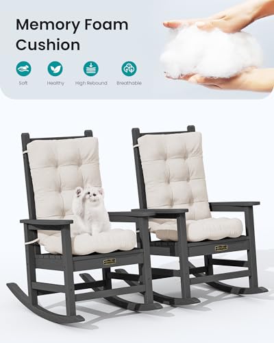 SERWALL HDPE Outdoor Rocking Chair Cushion Set of 4 Memory F...