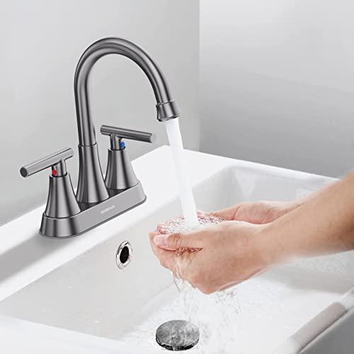 Bathroom Faucets for Sink 3 Hole Hurran 4 inch Brushed Grey ...