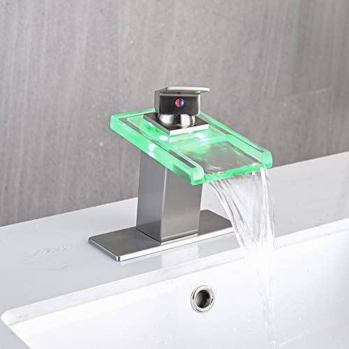 AVSIILE LED Bathroom Sink Faucet Brushed Nickel Waterfall Si...