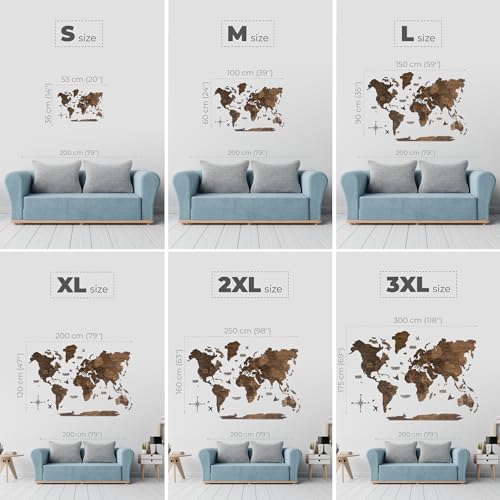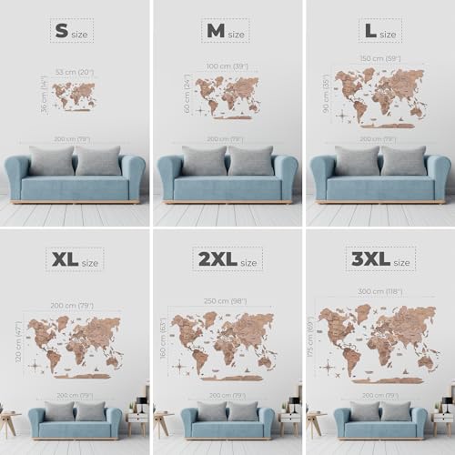 ENJOY THE WOOD 3D Wood World Map Wall Art Large Wood Wall Décor Housewarming Gift Idea Wood Wall Art World Travel Map For Home & Kitchen or Office (M Terra)