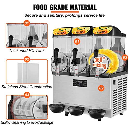 VEVOR Commercial Slushy Machine 36L Triple Tank Frozen Drink...